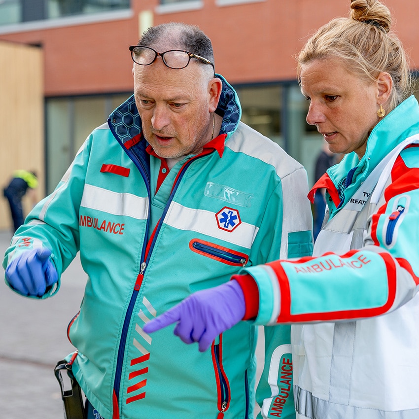 Met een slim digitaal uitvraagsysteem bepaalt hij of zij wat er aan de hand kan zijn en welke hulp passend is voor de noodsituatie. Terwijl de ambulance op weg gaat, krijg je als melder alvast instructies over wat je zelf kan doen om de patiënt te helpen. De zorg komt dus direct op gang.