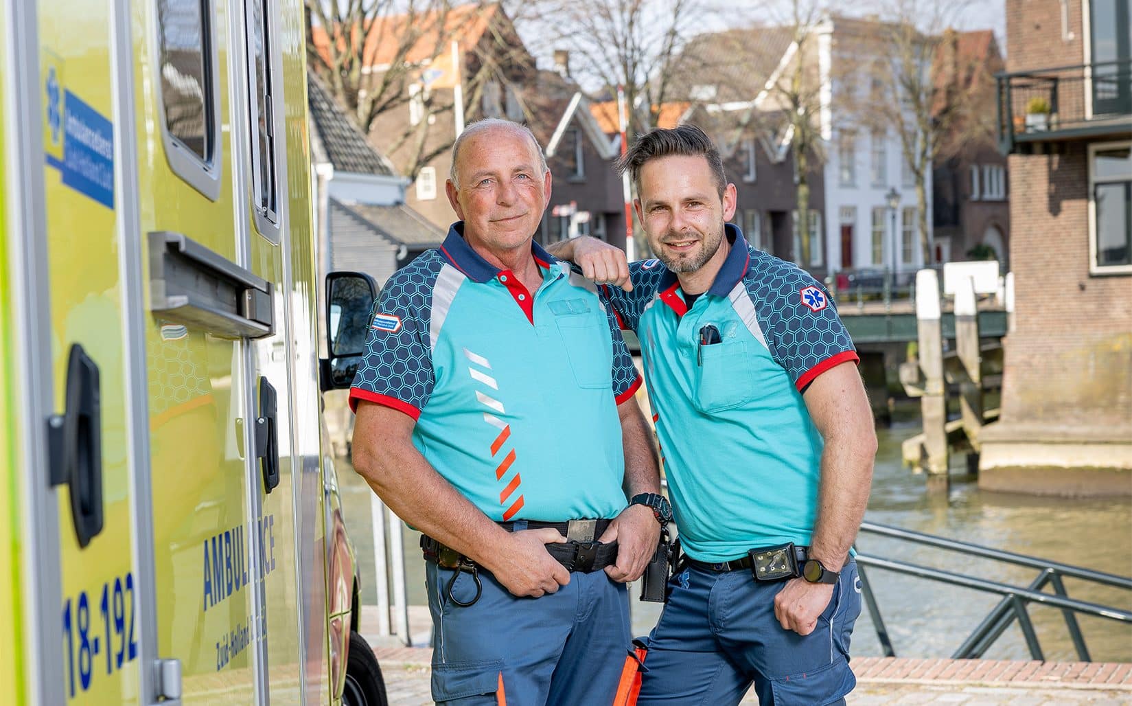 Toen hij de eerste keer samen met zijn vader in één ambulance de post uitreed, voelde dat wat onwennig, vertelt ambulanceverpleegkundige Wilco. “Bij mezelf dacht ik: nu moet ik je de hele dag Cor noemen, hopen dat ik me daar niet in vergis…” Voor vader Cor was het al net zo’n ongewone ervaring. “Ineens zit gewoon je kind als collega naast je! Maar tussen de ritten door vervielen we direct in onze vertrouwde rol. We ouwebeppen erop los.”